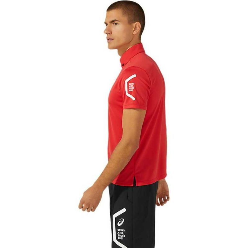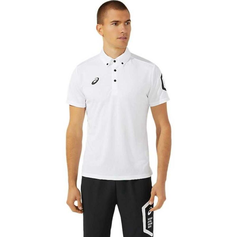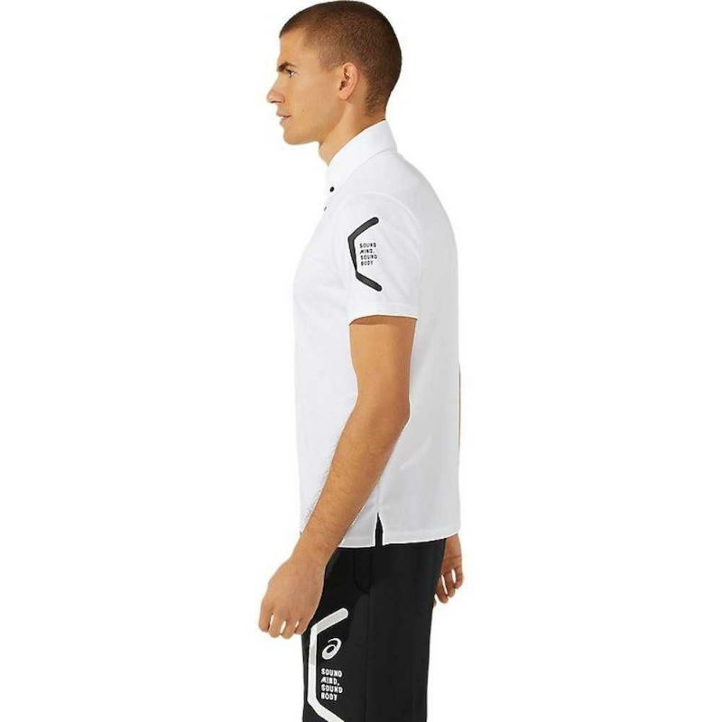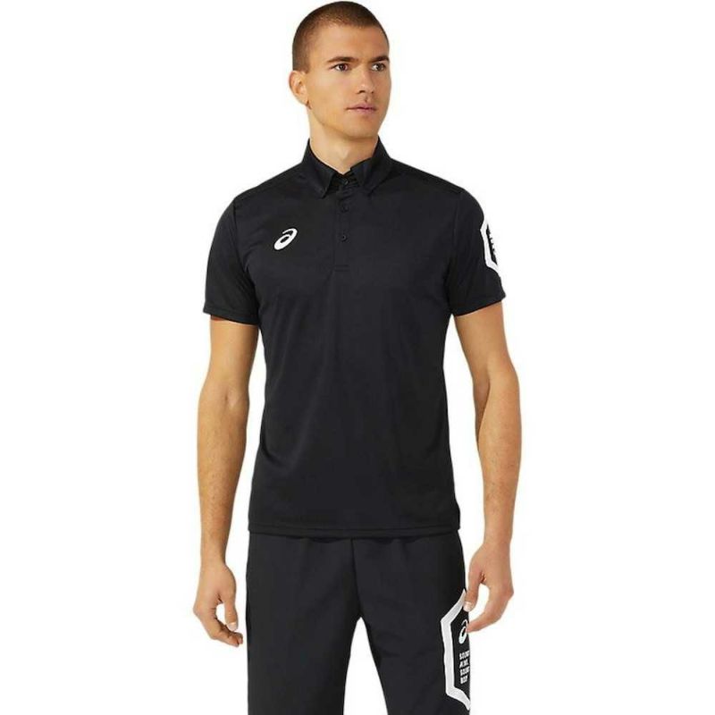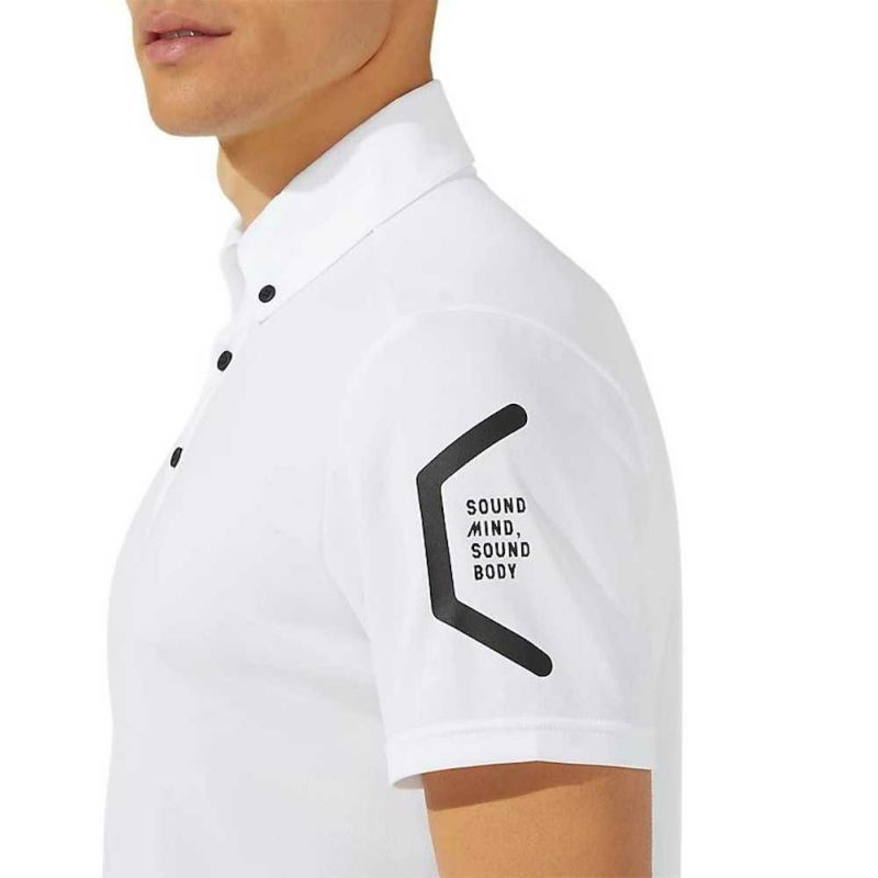 HEXAGONグラフィックにはアシックス企業スローガンでもある「SOUND MIND, SOUND BODY」を表記。優れた吸汗速乾性を追求した長期継続のボタンダウンポロシャツ。