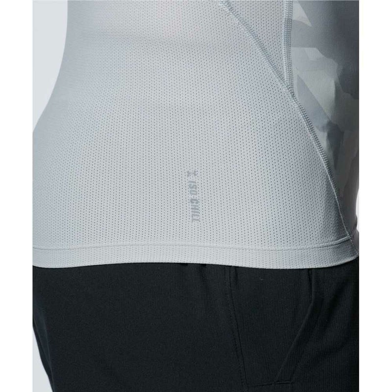 通気性を高めるために切替部にメッシュ素材を使用したショートスリーブシャツ。