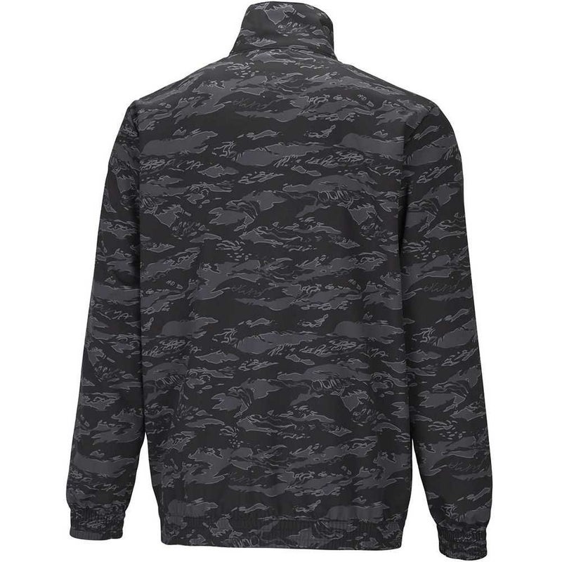 立ち襟、フルジップのシンプルなレギュラーシルエットに特徴的なシーズナルの総柄が目を引く一枚もののウーブンジャケット。UV50+。