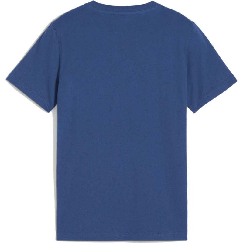 レギュラーフィットのシルエット、PUMAグラフィックカラーブロックのデザインが特徴的な T シャツです。8歳以上のお子様の普段使いにおすすめのアイテム。
