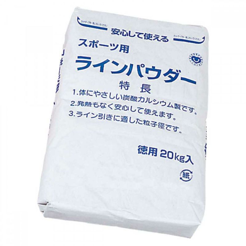 従来の消石灰に比べ比重が重く、ラインが長期間長持ちし、ホコリが出にくい。グランドのライン引きに、無公害(炭酸カルシウム)で便利なビニールパック詰。