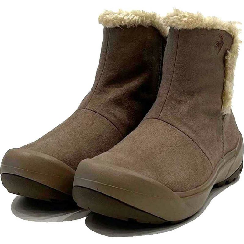 雪道を考慮したソールパターンのウィンターブーツ。雨や雪でも履ける防水設計で、インソールには発熱蓄熱素材「ベルセラ」を採用し、足元の暖かさにも配慮しました。3E相当でゆったりとした履き心地です。