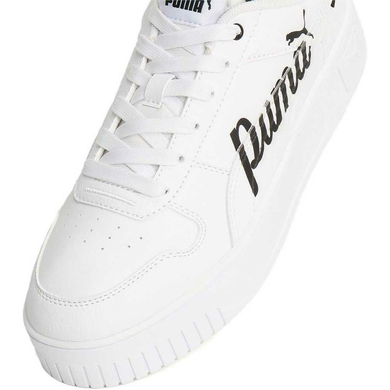 厚底ソールがポイントのキャリーナコレクションのニューデザイン。アッパーサイドにPUMAのワーディングを施し、ベーシックな印象ながらファッショナブルなデザインアプローチで足元からアクティブなセンスを光らせてくれます。クッション性が高く、長時間のご使用でも疲れにくいのが魅力。ヒールカウンターとサイドにプーマキャットロゴを施しメリハリをプラスしました。