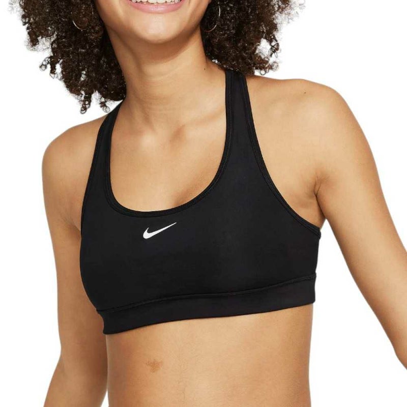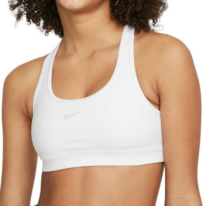 心地よくフィットするレーサーバックデザインのナイキ スウッシュ スポーツブラは、快適であるだけでなく、汗を逃がす機能も搭載。