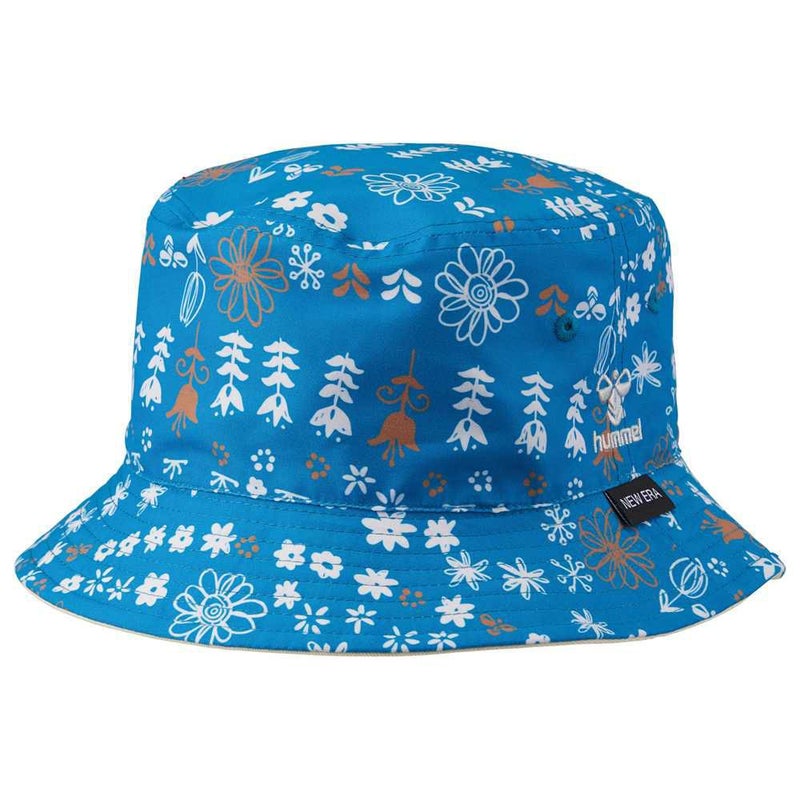 hummel × NEW ERAコラボレーションアイテム。PLAY FLOWERグラフィックを使用したリバーシブルバケットハット。