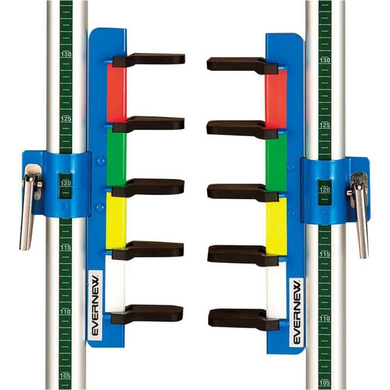 弊社製の走高跳スタンド(直径3.2cm仕様)ならすべて使用可能。2組お使いいただくと、50cmの高さを5cm間隔で10段の高さで設定ができます。