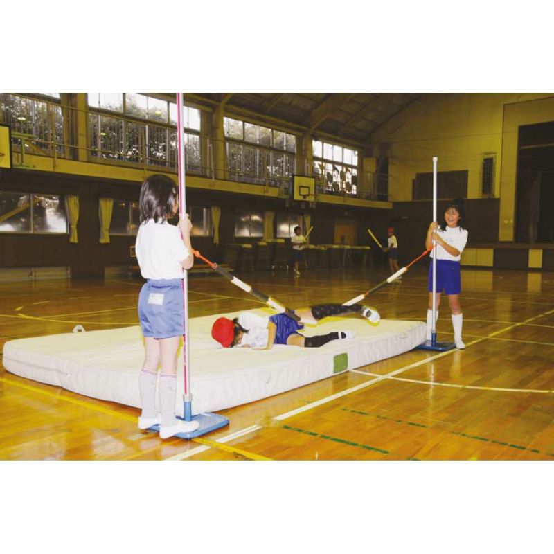 やわらかゴムバーで恐怖心をやわらげます、走高跳びの初期練習に最適。