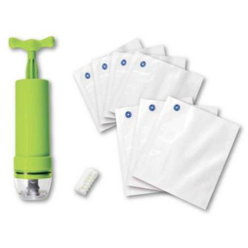 セット内容:ハンドポンプ1つ、スライダー1つ、保存袋M(230×280mm)4枚、保存袋L(280×300mm)3枚