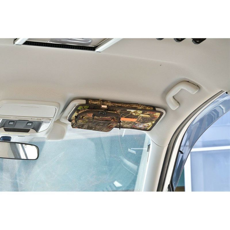 サンバイザーに取り付けて頭上スペースを収納に使用。