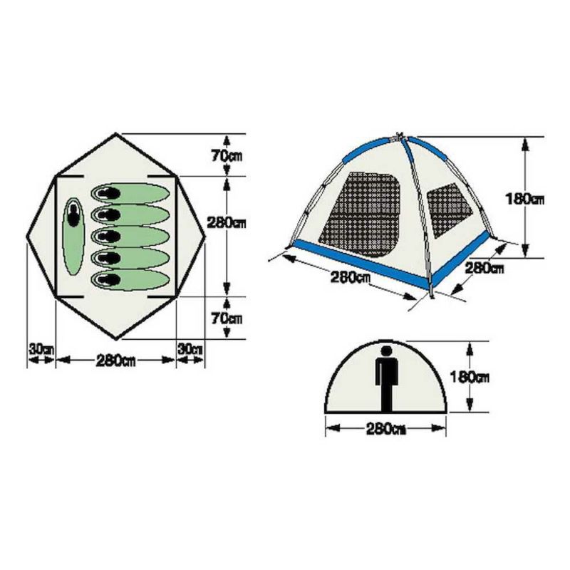 ●材質:フライ:ポリエステル70D(PU1000mm)、インナー:ウォール=ポリエステル70D(通気性撥水加工)、グランドシート=ポリエステル150D(PU1000mm)、メッシュ:ポリエステルノーシームメッシュ、ポール:径11.2mmグラスファイバー