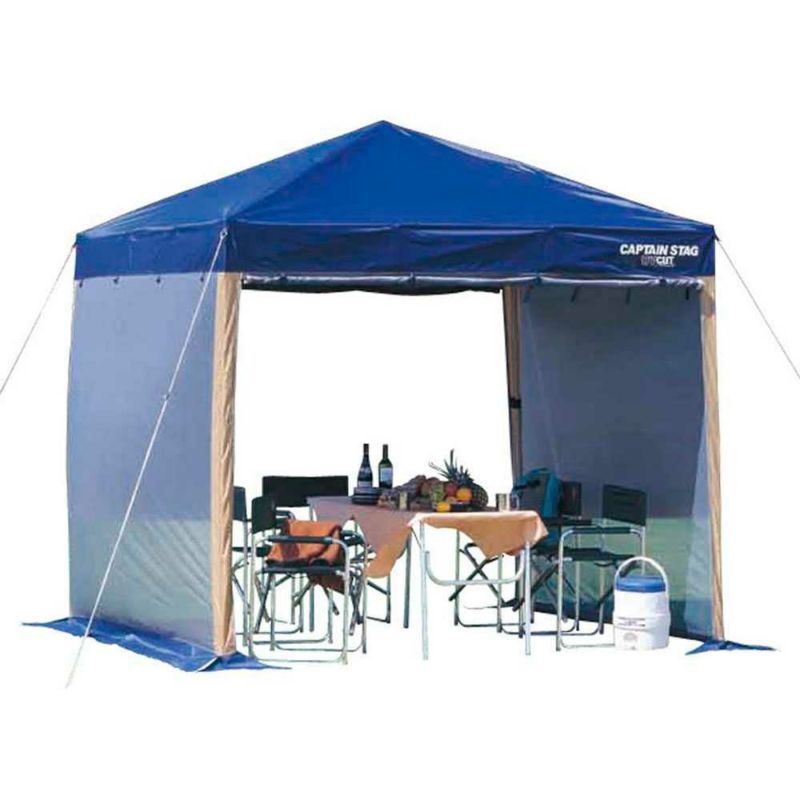 快適でレジャーやガーデンなど様々なフィールドで活躍!フリーマーケット・町内会・祭事などにも便利!●4面メッシュで、いやな虫の侵入を防げます。●メッシュ部は全て巻き上げ可能。●プルリングを採用!設営・収納が簡単・安全です。●フライシートはポリエステル150Dにシルバーコーティング!紫外線99パーセントカット。