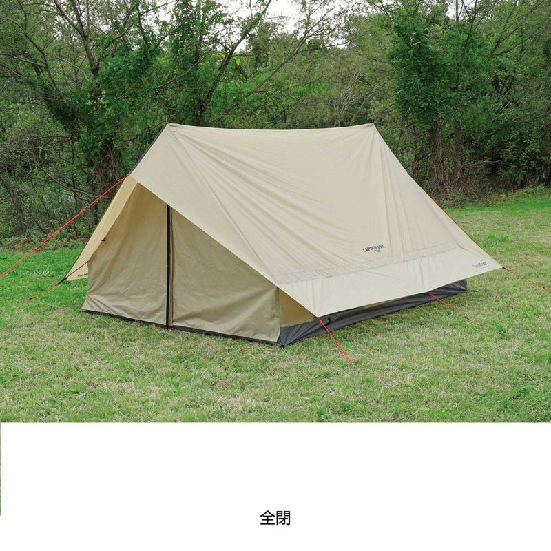 2本のポールで設営簡単。クラシカルなフィルムのロッジタイプテント、吊り下げ式のインナーテント付。