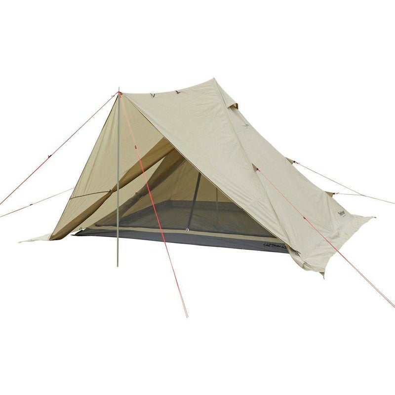 材質:フライ/ポリエステルリップストップ210T(PU2,000mm)UV加工、撥水加工、インナー/ウォール=ポリエステル185T(通気性撥水加工)、メッシュ=ポリエステルノーシームメッシュ、フロア=ポリエステルOXF150D(PU3,000mm)、ポール/アルミニウム合金径19mm