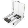 ●材質:テーブル/甲板=合成樹脂化粧箱合板、構造部材=アルミニウム(表面加工アルマイト)、チェア/鉄(エポキシ樹脂塗装)、張り材 /ポリエステル