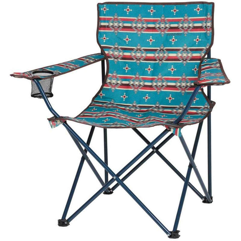 広げるだけで組み立てができるアウトドアチェアです。便利なカップホルダー付き。背面にポケット付き。