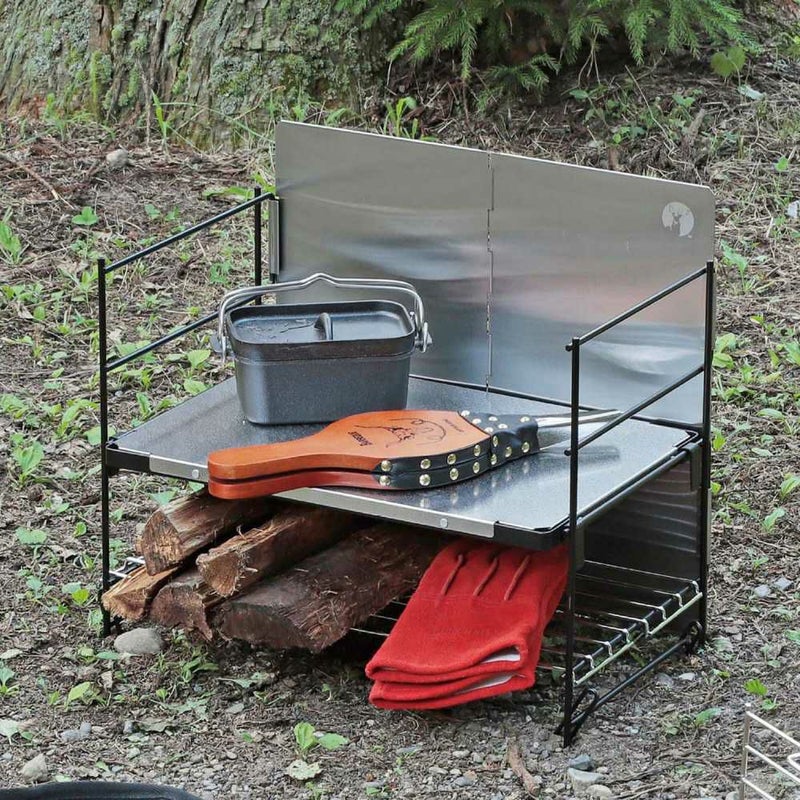 火にかけた鍋やダッチオーブンが直接置ける、耐熱性が高いステンレス製板なので焚き火まわりに最適です。