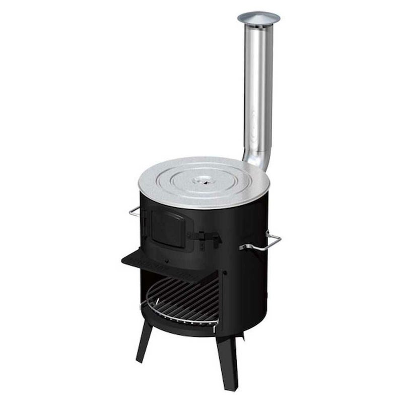 シーンに合わせた5つの用途(かまど、ストーブ、バーベキュー、焚き火、ダッチオーブン)。開閉とびら付。目皿の高さ2段階調節。