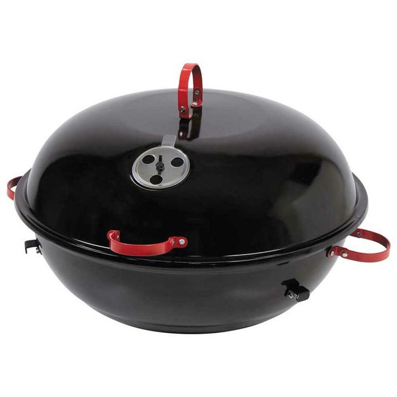 材質:本体・ふた/普通鋼板(表面加工=ほうろう)、フレーム・ジョイント脚/鉄(エポキシ樹脂塗装)、バーベキュー網・目皿・2連フック/鉄(クロムめっき)、通気孔(大)・通気孔(小)・炭受け/ステンレス鋼