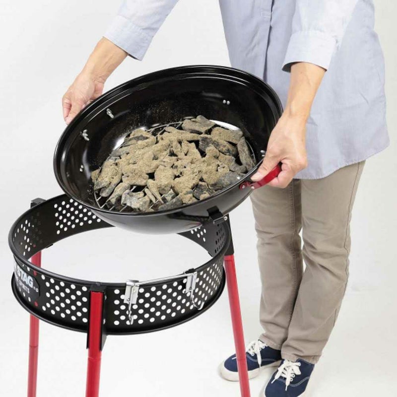 従来のフード付グリルの「組み立てにくい」「部品が多い」「組み立てたら持ち運べない」といった問題をすべて解決!フレームに脚を差し込んで本体を乗せるだけで簡単に組み立てできます。ハイ・ロー2スタイルが楽しめます。ローは焚き火台としても使えます。囲みやすい丸型グリルで、アメリカンスタイルはもちろん、ジャパニーズスタイルのBBQにも最適。開閉式で燃料やスモークチップの継ぎ足しが簡単です。本体が外れるので炭などの後片付けが簡単です。type2では本体底に開閉式の通気孔を追加して炭が燃焼し易くなり ました。