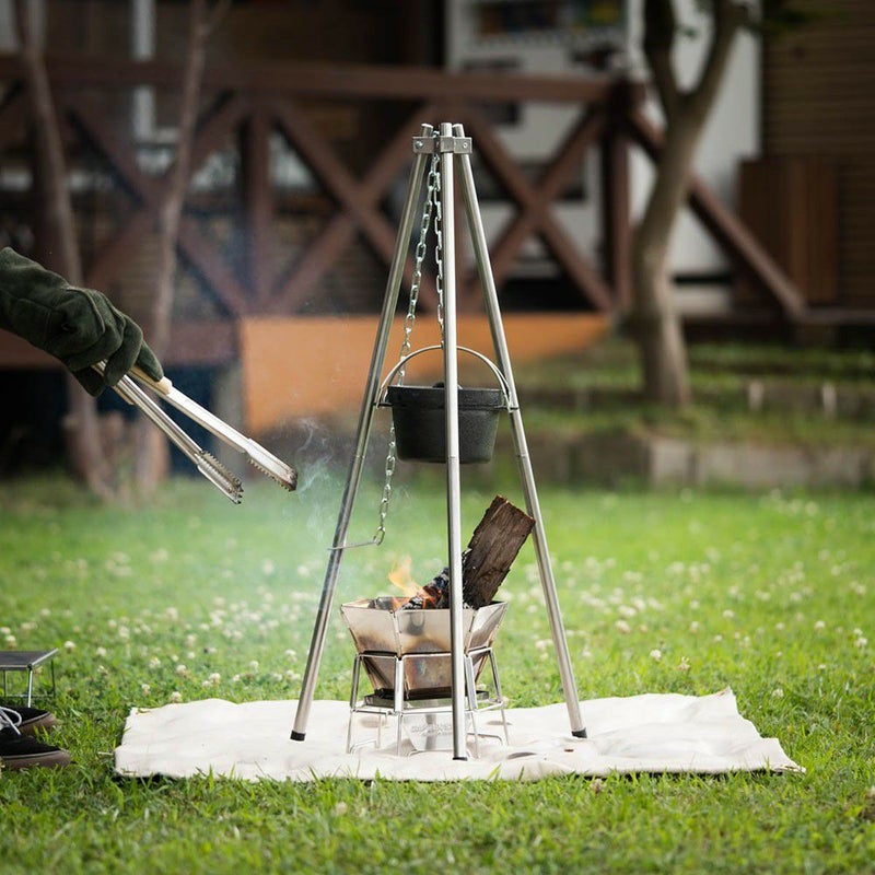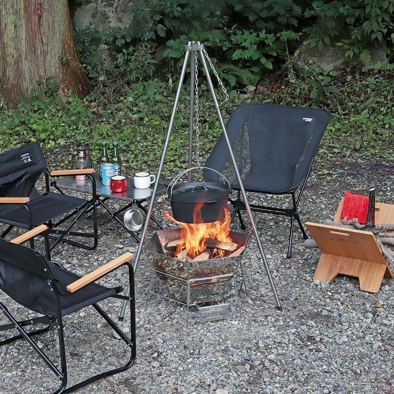 ハイ1m14cm&ロー78cm、2WAYでの使用ができる焚き火三脚。