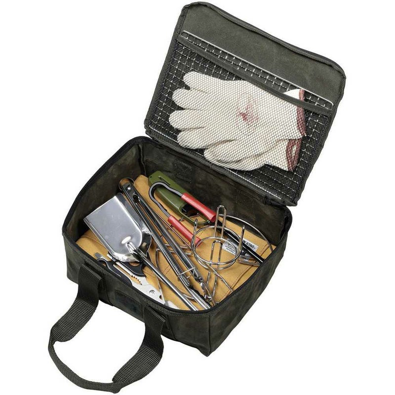 角型なのでダッチオーブンだけでなくスキレットやキャンプ小物も収納できます。