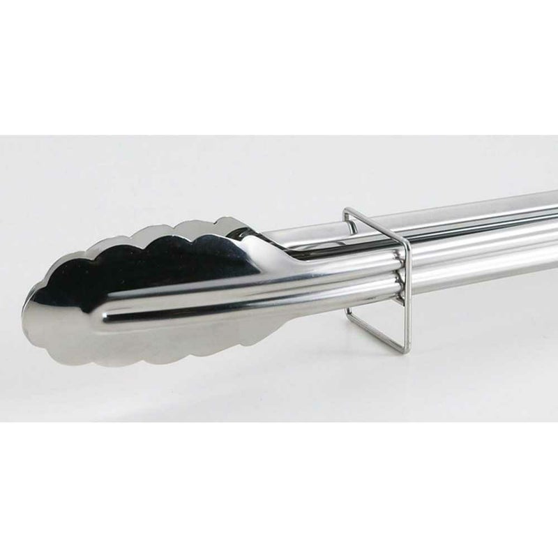 収納ストッパーで固定すると、トング先端が卓上に付かず置けます。ステンレス製で衛生的!