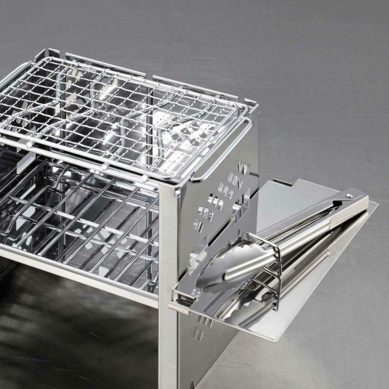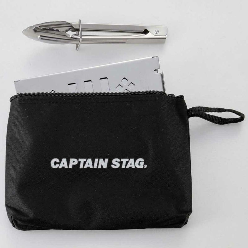 ソロBBQに最適なミニトングです。「カマド スマートグリルB6型」にぴったりなサイズです。収納バッグにグリルと一緒に収納可能です。「カマド スマートグリルB6型用マルチパネル」に置けるサイズです。収納ストッパー付き。収納ストッパーで固定すると、トング先端が卓上に付かずに置けます。