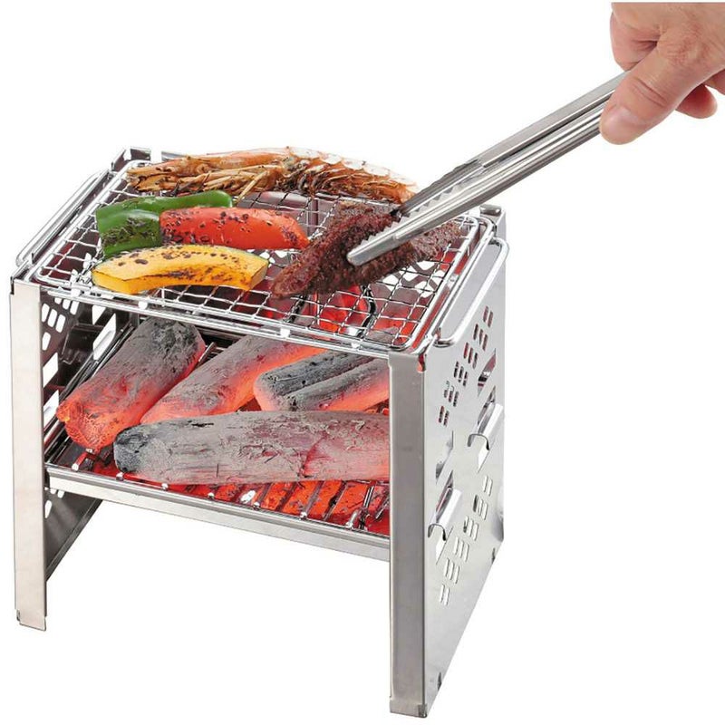 ソロキャンプに最適なスリムタイプのトング。料理用トングとしてはもちろん、炭用のトングとしても使えます。卓上焼肉用のトングとしても便利です。収納ストッパーで固定すると、トングの先端が卓上に付かず置けます。炭用のトングとしても使えます。カマドスマートグリルB6型・B5型(別売)の収納バッグに、グリルと一緒に収納することができるサイズです。