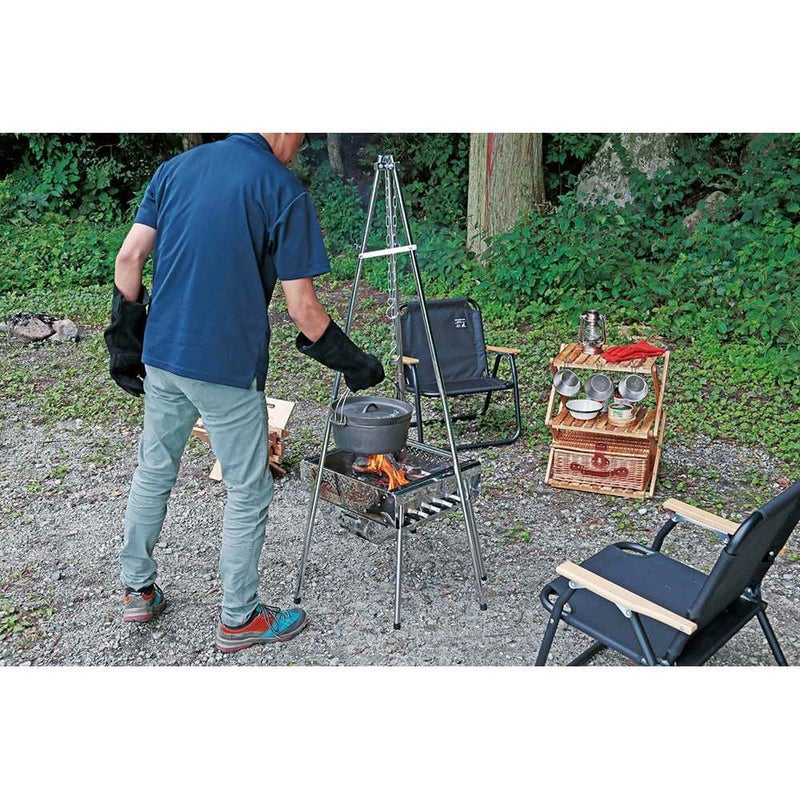 丈夫な牛革グローブ。焚き火・BBQなどアウトドアで幅広く使えます。熱やケガから腕を守るロングタイプ。