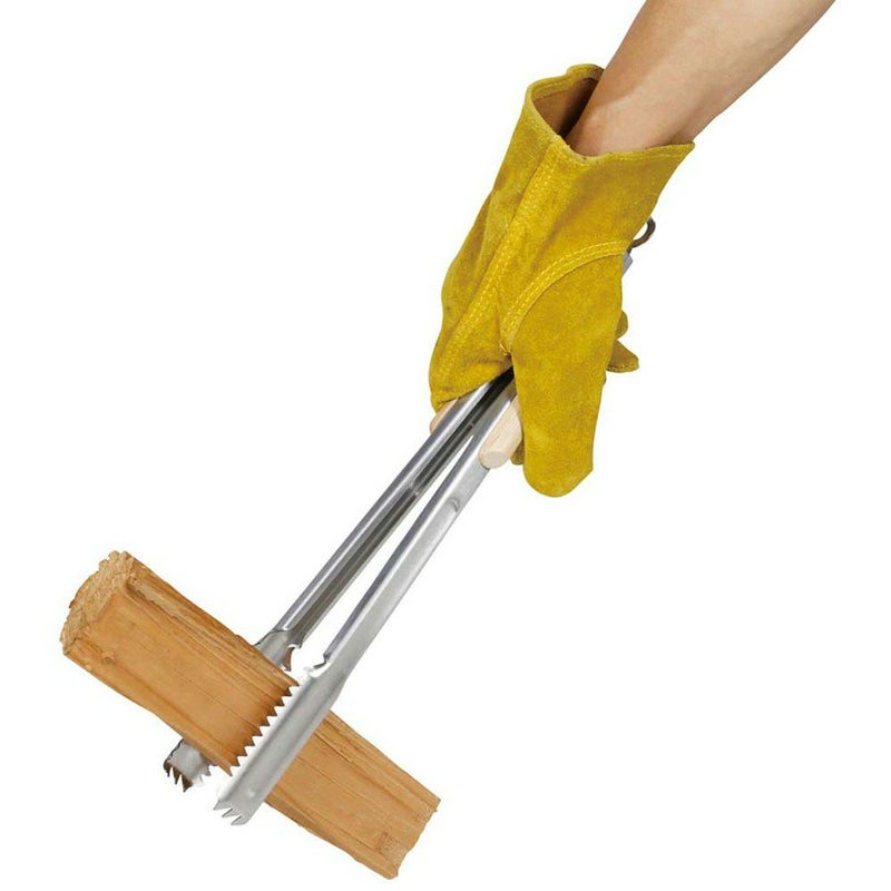 薪や木炭がしっかりつかめるギザ付き炭バサミです。