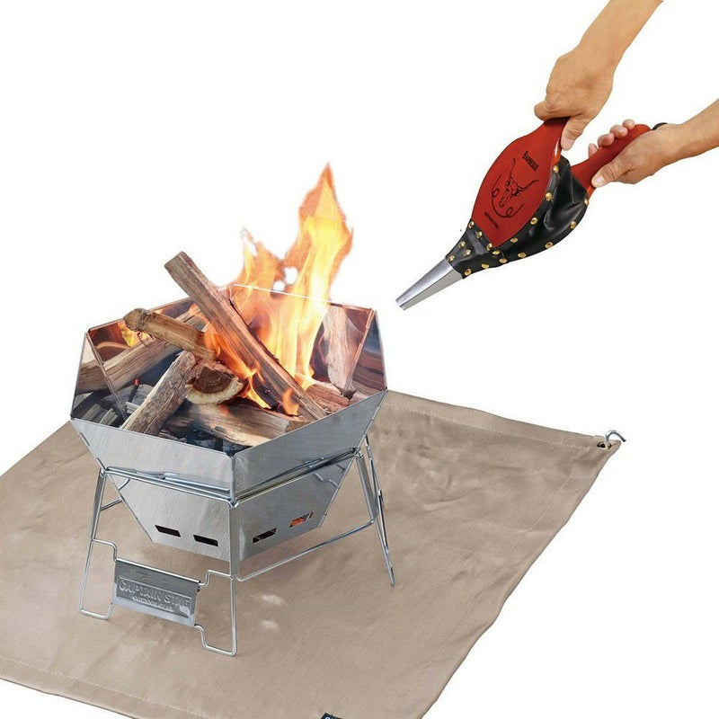 伝統的なふいごタイプの送風機。ひと味違ったキャンプサイトを演出する焚き火ツール。