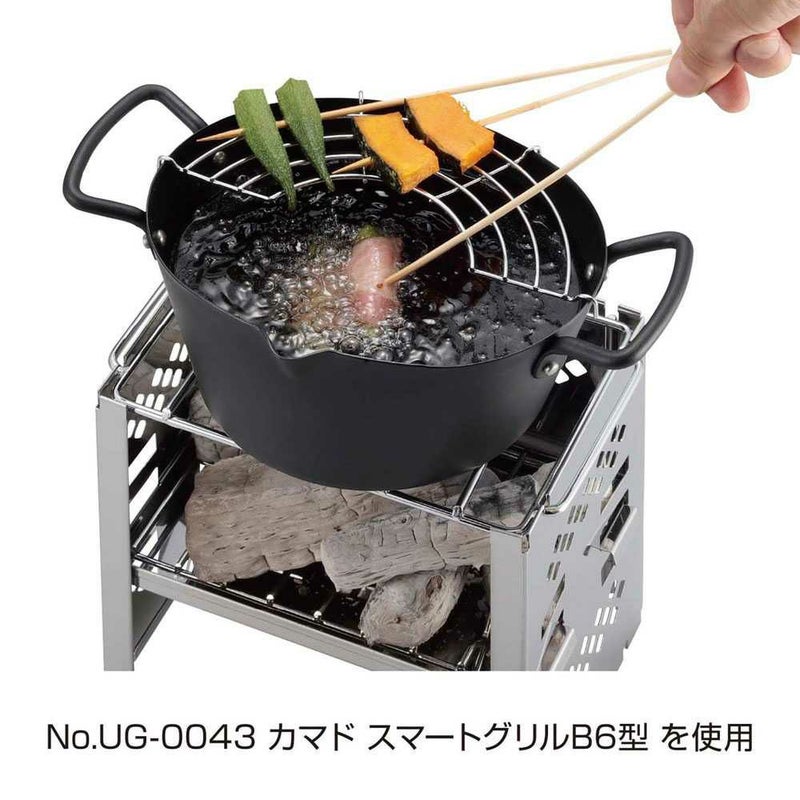 素材:本体/鉄(シリコーン樹脂塗装)、取っ手/鉄(焼付塗装)、アミ/鉄(クロムめっき)