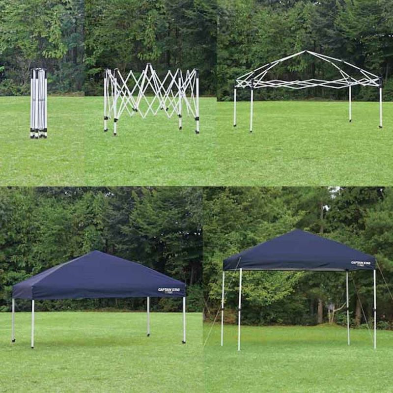 組立簡単でフリーマーケット・町内会・祭事・各種イベント・スポーツ時などに便利!フレームには丈夫なスチールを使用。表面には耐食・耐摩耗性に優れたアルマイト加工。クロスバー・ルーフフレームには、強度の高いスチールを使用し錆やキズに強いパウダーコーティング塗装を施しています。フライシートには、耐摩耗性に優れたポリエステル150デニールを使用。表面にはUV-PROTECTION加工、裏面にはシルバーコーティング加工を施すことで紫外線を99%カット!