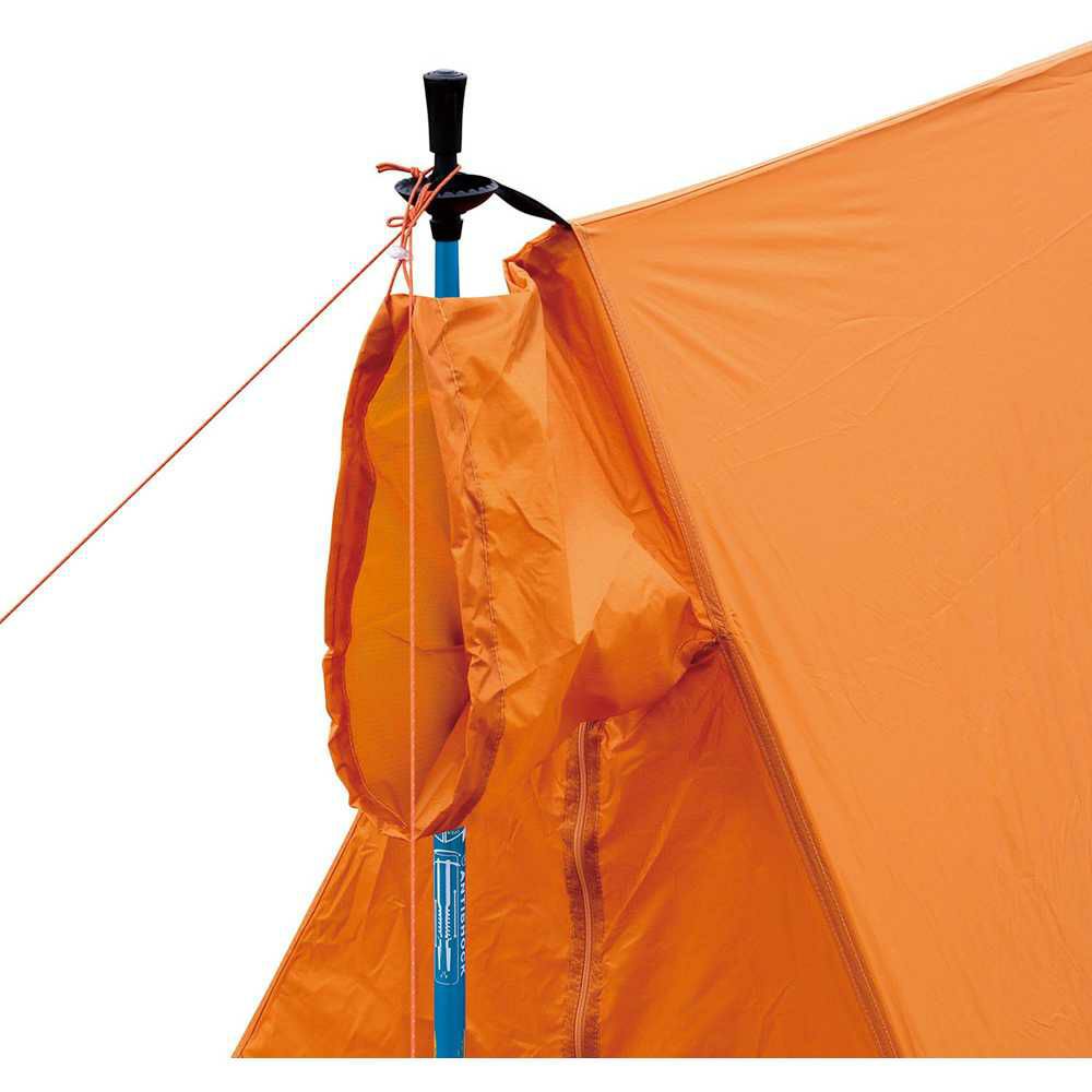 ビバークギアの定番。軽量でコンパクト、携行に適したツェルト。非常時や休憩時などにステッキやポール、ロープを使用して設営できます。(※90cmの長さに調整できる別売のステッキ・ポールが別途必要です。)前後の出入口の上にベンチレーションを装備。テントのセンターにフラップを装備。(※フラップ用ガイドロープは付属しています。)収納に便利なバッグ付き。