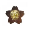 桜をかたどったメタルピンバッジ。エンブレムが描かれています。