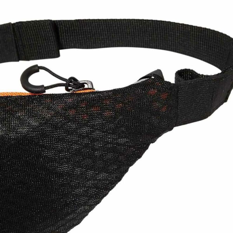 軽量でミニマルなデザインを追求したラニング用のウエストポーチMサイズです。体にフィットしやすい構造で、補給食などの収納時でも揺れを軽減。メインコンパートメントは、シンプルな1気室構造。フロントには約500mlペットボトル収納までも対応するストレッチ素材を使用し、肌に接地する背面には汗によるムレを軽減するメッシュを採用。