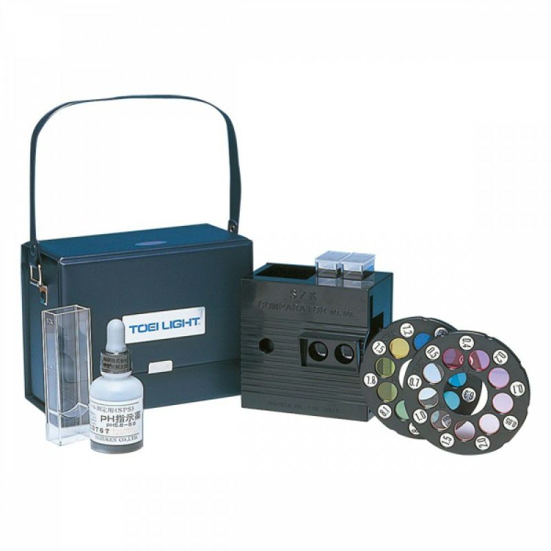 ●DPD錠剤50ケ(50回分)、pH試薬30ml(50回分)、本体1ケ、残留塩素用比色盤1ケ、pH用比色盤1ケ、測定用フタ付試験管2本、フタ無試験管1本、収納ケース付(幅15.5×奥行8.5×高さ12cm)