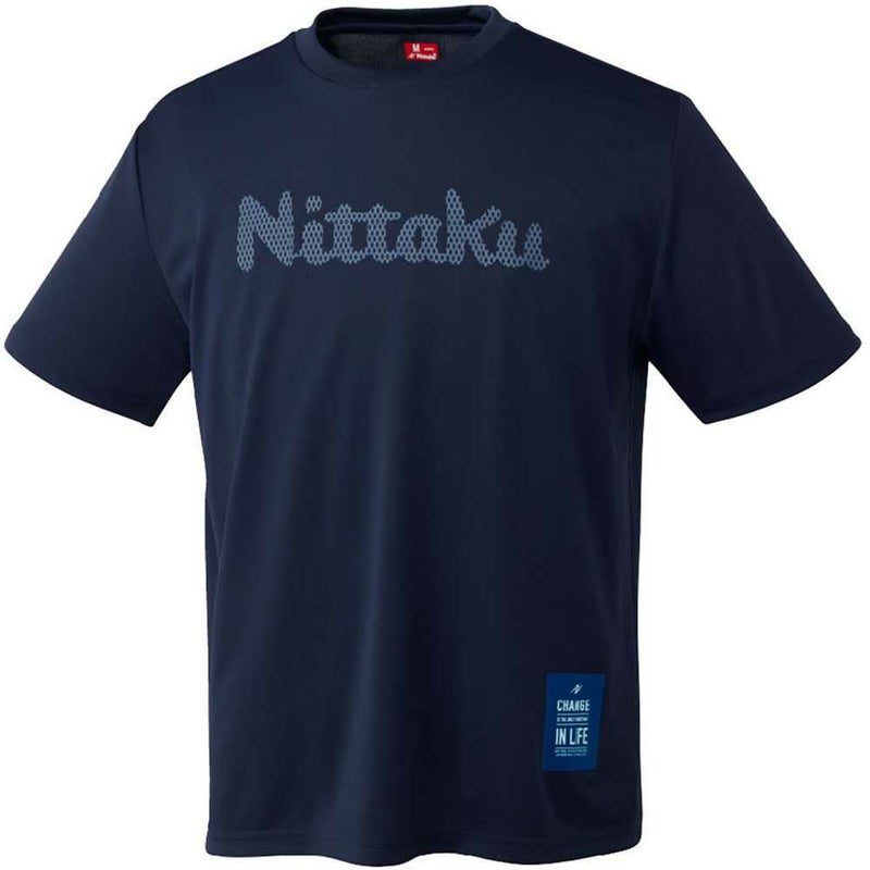 変化を重ねてステップアップしよう!サラッと生地のTシャツ。前面にドット調のニッタクロゴ、左裾には「とどまることなく変化していこう」という想いを込めたメッセージをデザイン。伸縮性が高く、サラッとした生地なので練習にピッタリです。