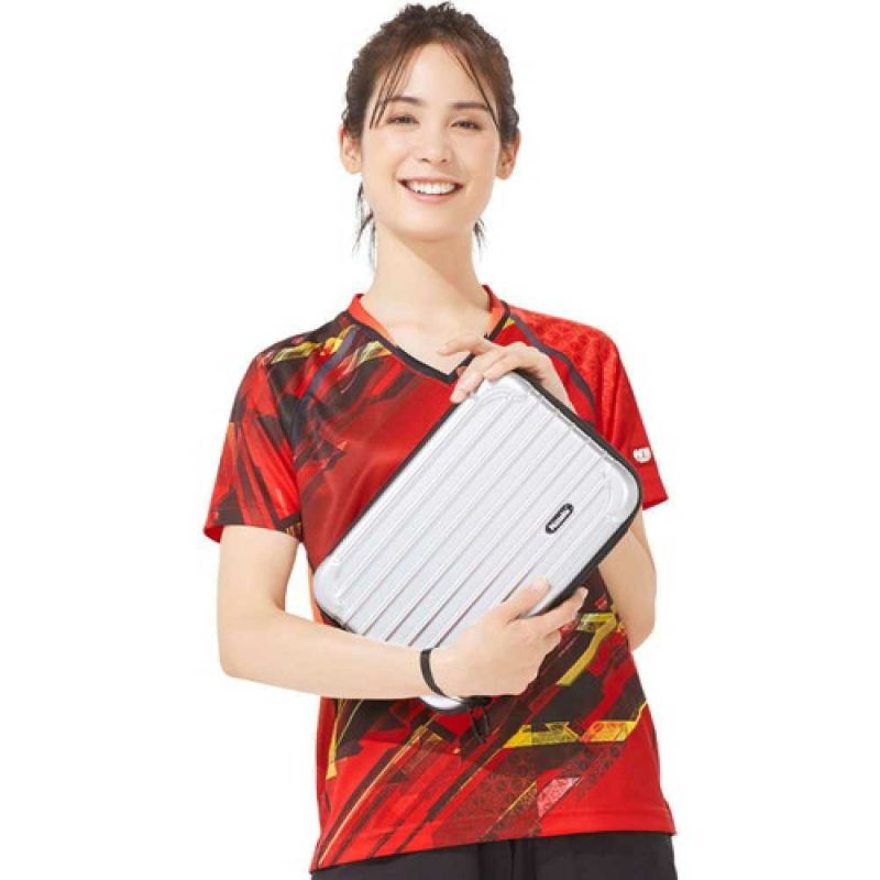 ジュラルミンケース風デザインの、ハードケース!耐衝撃に優れた外装、起毛仕様の内装。ダブルでラケットを守ります。内側の網状ポケットで小物を整理。ラケット2本入用。A5版ノートや、プチカウンター2も収納可能。