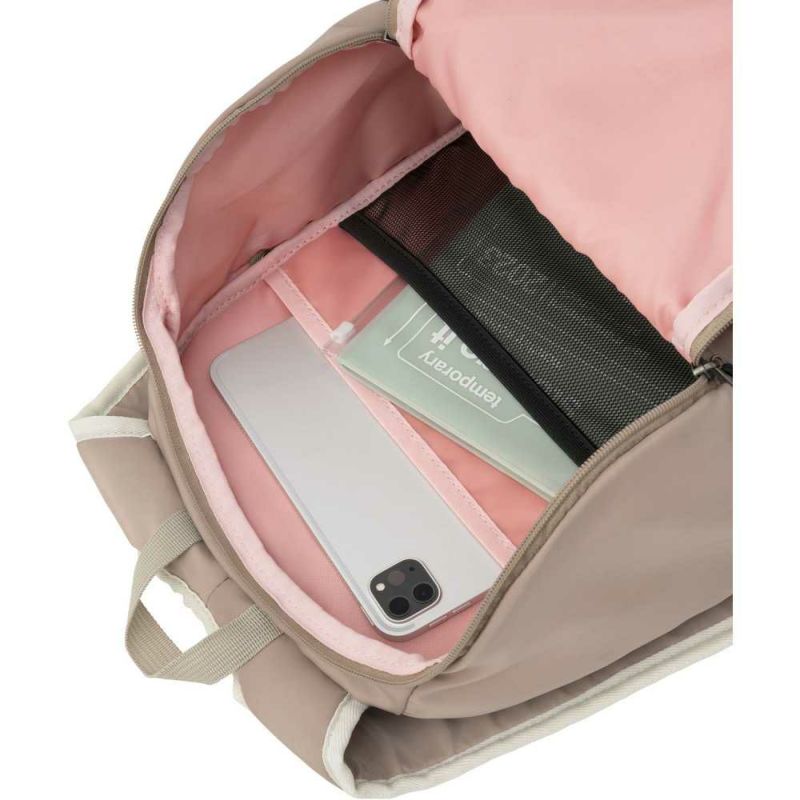 女性らしさを感じる丸みのあるフォルムと、ルコックスポルティフのロゴでデザインしたシリコーンネームがポイントの普段使いしやすいバックパックです。背面には通気性を施す構造と素材で背中のムレを軽減。背面パネルを上下でサイズを変えることで、フィット感アップしました。メイン収納は下向きに大きく開くので内部が見やすく、荷物が取り出しやすい設計。右サイドには中へ直接アクセスできるファスナーポケットがあり、背負ったまま中身が取り出せます。ショルダーの付け根が左右でつながっているので肩へのフィット感がよく、負担を軽減させる設計。使いやすさと嬉しい機能がたくさん詰まった、ルコックスポルティフこだわりのバッグパックです!