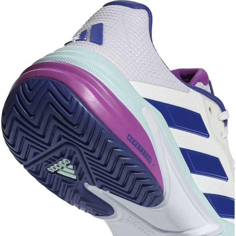 REPETITORミッドソールがサポート力を発揮し、次の一歩へのスムーズな移行をかなえる。さらに、GEOFITセンスポッドがかかとの形に自然にフィットして、マッチポイントまで足元を快適に支える。