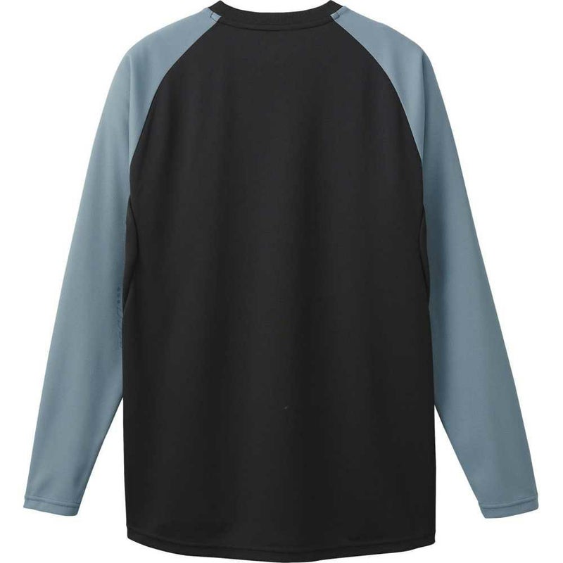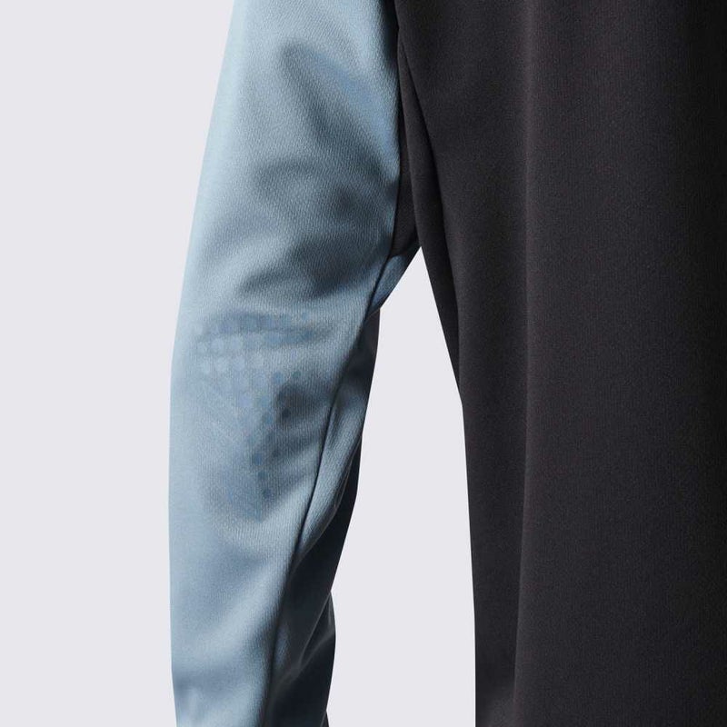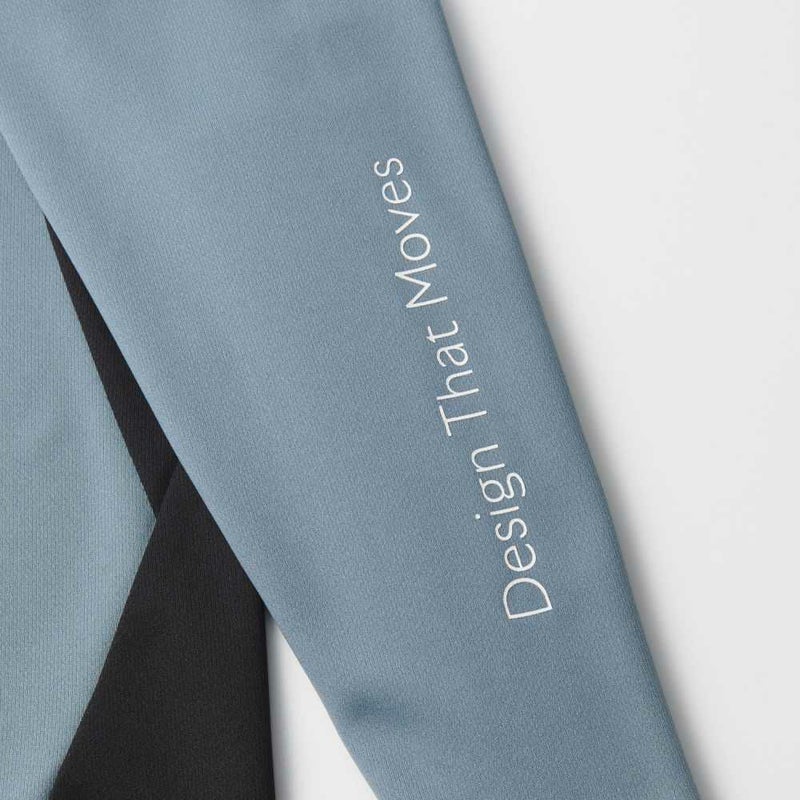 首元の配色切替デザインと袖のグラフィックプリントがデザインアクセントになっています。