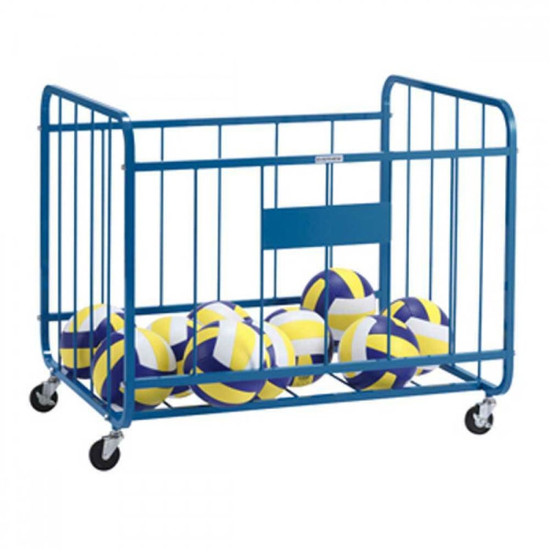 仕様:直径7.5cmキャスター付、焼付塗装、5号球(バレー)で約50球収納可