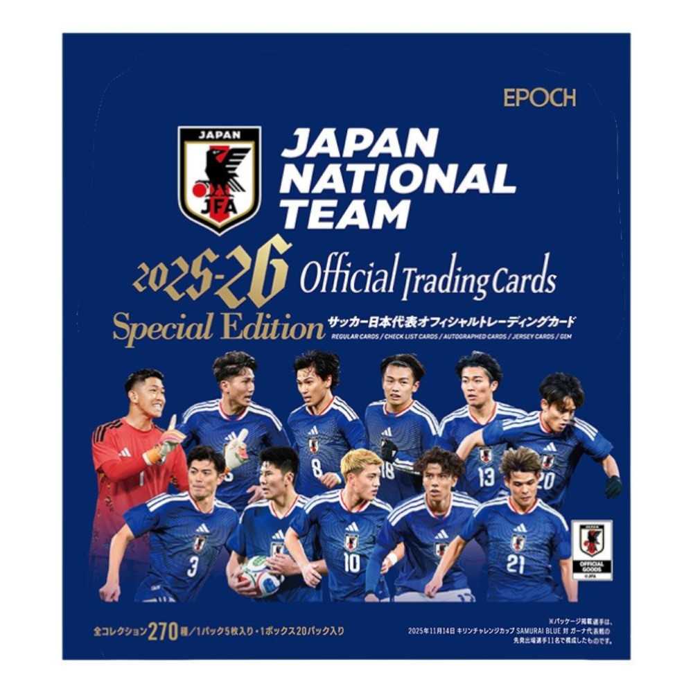 他の画像を見る JFA サッカー日本代表 2025-26 オフィシャルトレーディングカード スペシャルエディション BOX JFA57946BOX( サッカー カード ファングッズ ) 販売価格 ¥ 15,400 税込 カートに入れる お気に入りに登録する