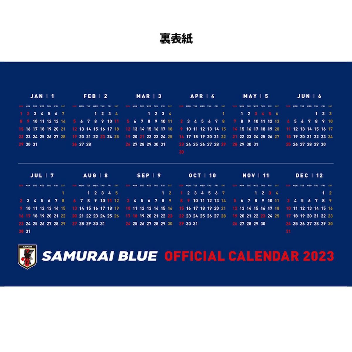 他の画像を見る 予約商品 JFA 2023年 サッカー日本代表カレンダー (SAMURAI BLUE) 壁掛けタイプ JFA23001 販売価格 ¥ 2,200 税込 在庫切れ 再入荷お知らせ お気に入りに登録する